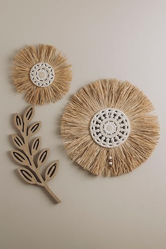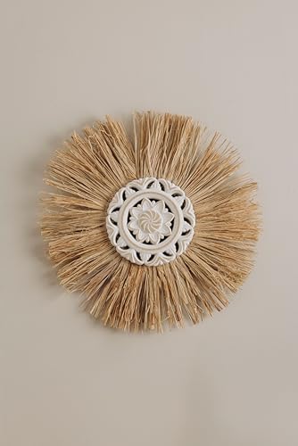Generic - ووردز كو. ميدالية حائط منحوتة بالزهور من القش - ديكور أبيض وذهبي - 30 × 30 سم - نمط تقليدي وعصري