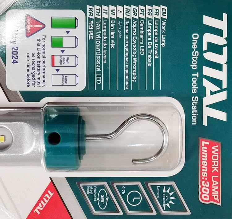 carrr - Work Lamp Emergency Light 300 Lumens Rechargeable Li-ion Battery 4-7 Hrs Backup, LED Emergency Flashlight Steel Hook/Magnet Stand - TWLI35261 T.0.T.A.L