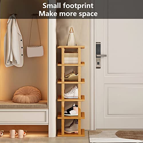Worparsen - رف احذية من خشب الخيزران منظم 6 طبقات قابل للفصل عمودي لعرض الاحذية خزائن كلاسيكية رفيعة للممر والمساحات الضيقة. حامل طويل للتكديس لكونر. أصفر