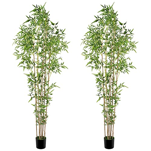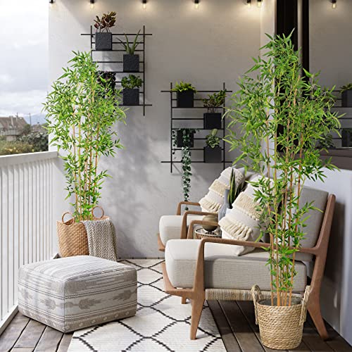 Worth - Worth Garden 7ft Bamboo Silk Trees 2-Pack Artificial Plants, Realistic Faux Bamboo Tree, Tall 82in Greenery Office Indoor Outdoor Decor, 1500 Green Leaves & 7 Thin Trunks,Modern Unique Design
