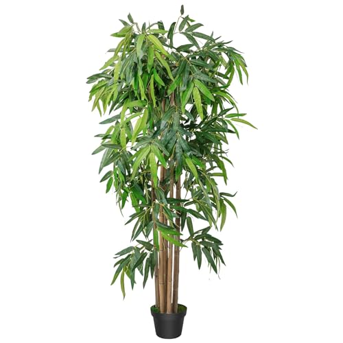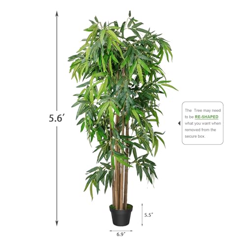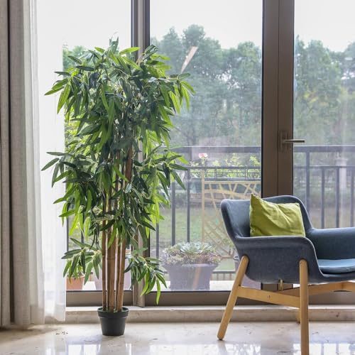 Worth - Worth Garden Bamboo Silk Trees Artificial Plants, 5.6ft Realistic Faux Bamboo Tree, Tall 67in Greenery Office Indoor Outdoor Decor, 975 Green Leaves & 6 Thick Trunks, Black pot & 20g Dry Moss Included