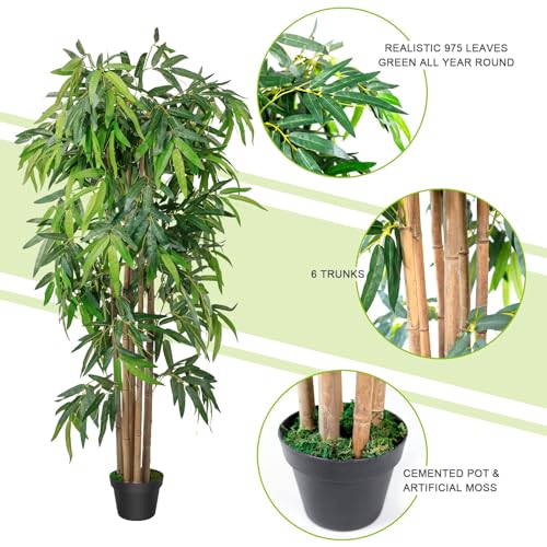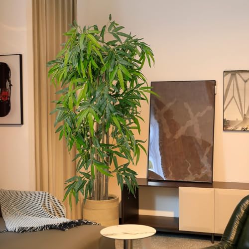 - 【Realistic Appearance】 This Lifelike bamboo silk tree artificial plant , and the 975 green leaves and 6 thick trunks are full of noticeable luster and vitality and will never fade.This artificial bamboo adds highlights and vitality to the room.They can keep people in a comfortable mood for the day.