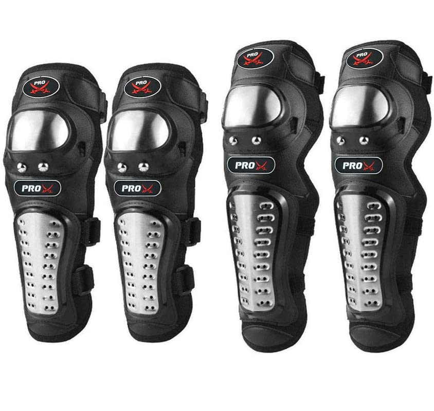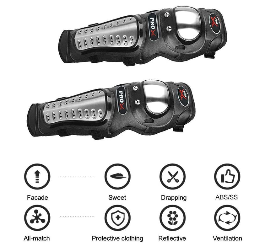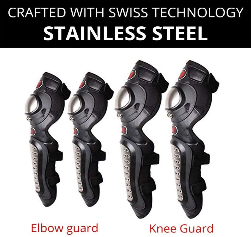 Woschmann - Woschmann -Pro-X Alloy Stainless Steel Knee Guard Flexible Breathable Adjustable Knee Shin Armor Elbow Protector for Bikers and Riders (Black)