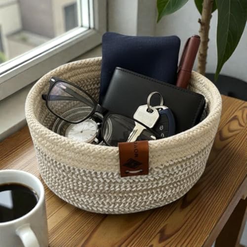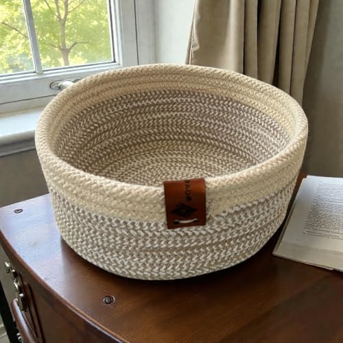 Woven it - Cotton basket mixed beige & off white 18cm x 8cm, storage basket, and organizer .Can be used in Kitchen, Dining Room, Living room, Bed room, Kids Room, Bathroom, Indoor & outdoor.