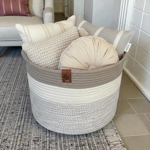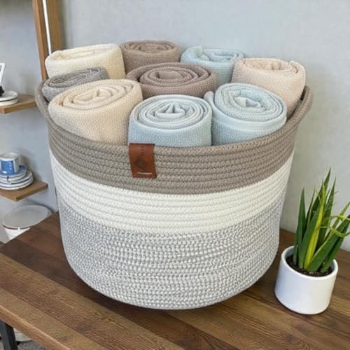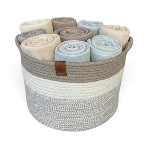 Woven it - Cotton Basket mixed beige & off white 30cm x 20cm, storage basket, and organizer Can be used in Kitchen, Dining Room, Living room, Bed room, Kids Room, Bathroom, Indoor & outdoor.