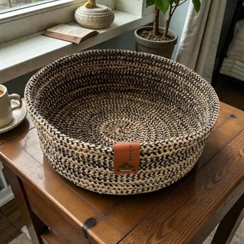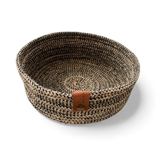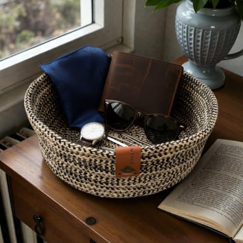 Woven it - سلة قطنية مختلطة باللونين الاسود والبيج مقاس 22 سم × 8 سم، سلة تخزين ومنظم يمكن استخدامها في المطبخ وغرفة الطعام وغرفة المعيشة وغرفة النوم وغرفة الاطفال والحمام والاماكن الداخلية والخارجية.