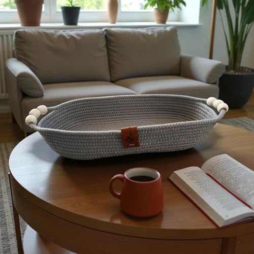 Woven it - Cotton Oval Silver Plate with wood accessories 27cm x 15cm x 6cm, storage basket & organizer.Can be used in Kitchen,Dining Room,Living room,Bed room,Kids Room,Bathroom,Indoor &outdoor.