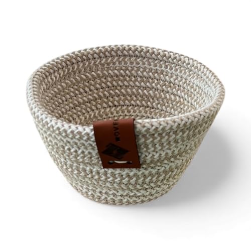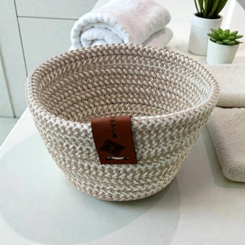 Woven it - Cotton round mixed beige & off white small Basket 14cm x 7cm, storage basket & organizer.Can be used in Kitchen,Dining Room,Living room,Bed room,Kids Room,Bathroom,Indoor &outdoor.