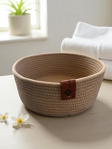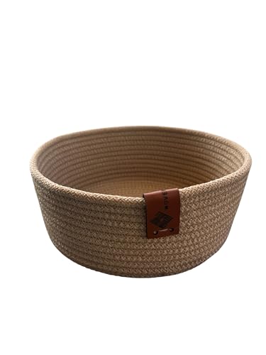 Woven it - Handmade Cotton round Beige basket 22cm x 8cm, storage basket & organizer.Can be used in Kitchen,Dining Room,Living room,Bed room,Kids Room,Bathroom,Indoor &outdoor.