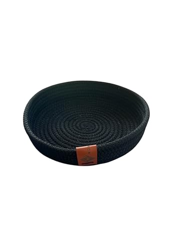 Woven it - طبق اسود دائري مصنوع يدويا من القطن مقاس 17 سم × 4 سم، يمكن استخدامه في المطبخ وغرفة الطعام وغرفة المعيشة وغرفة النوم وغرفة الاطفال والحمام والاماكن الداخلية والخارجية.