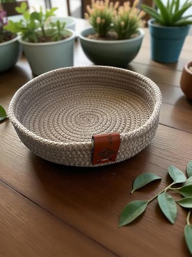 Woven it - طبق ذهبي دائري مصنوع يدويا من القطن مقاس 17 سم × 4 سم، يمكن استخدامه في المطبخ وغرفة الطعام وغرفة المعيشة وغرفة النوم وغرفة الاطفال والحمام والاماكن الداخلية والخارجية.