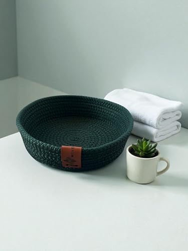 Woven it - Handmade Cotton round Green Plate 17cm x 4cm, Can be Used in Kitchen, Dining Room, Living Room, Bed Room, Kids Room, Bathroom, Indoor & Outdoor.