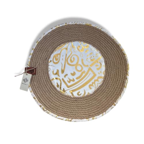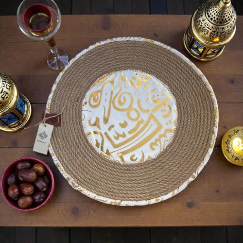 Woven it - مفرش طاولة بتصميم رمضان من قماش الجوت × ابيض مقاس 35 سم، يمكن استخدامه في المطبخ وغرفة الطعام وغرفة المعيشة وغرفة النوم والاماكن الداخلية والخارجية.