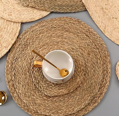 - With a generous 38 cm diameter, this round mat provides comprehensive protection for large dinner plates, serving bowls, and hot cookware, ensuring your table remains free from heat damage, scratches, and accidental spills during meals or gatherings.