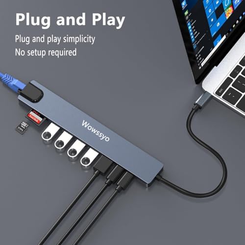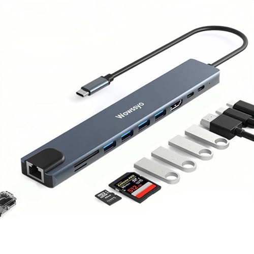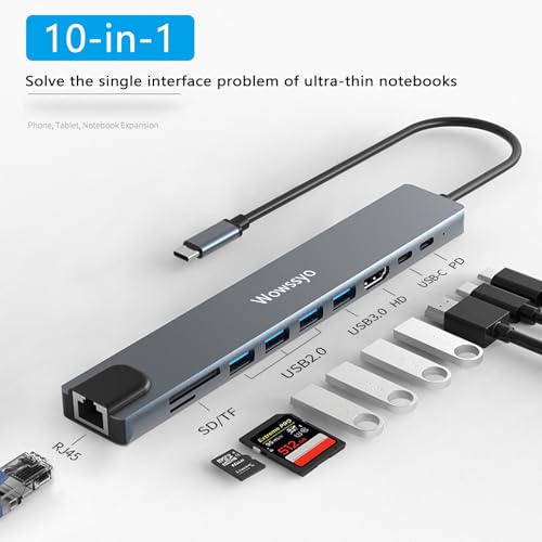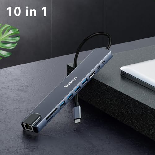 Wowssyo - قاعدة شحن USB نوع C بتصميم 10 في 1، موزع USB متعدد المنافذ HDMI 4K بي دي 100W، USB 3.0، SD/تي اف، USB نوع C لماك بوك M1 اير برو، محول آيباد وسويتش وكروم كاست والموبايل من واوسيو
