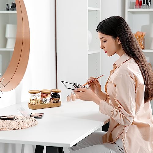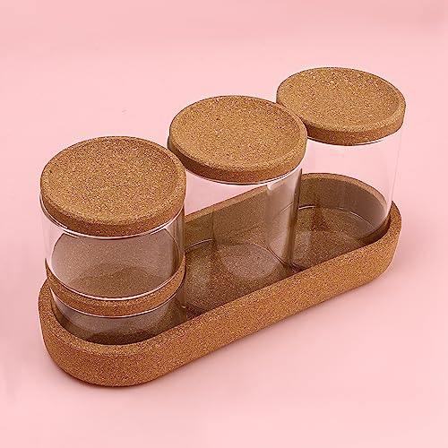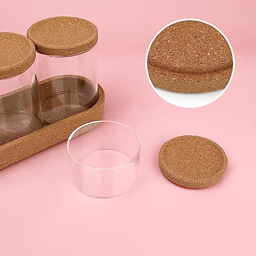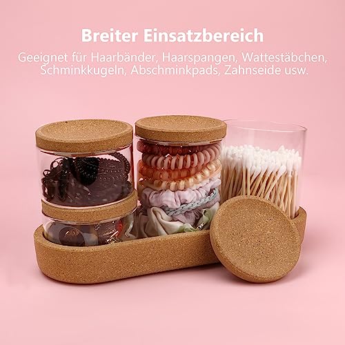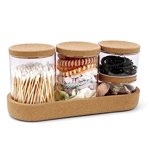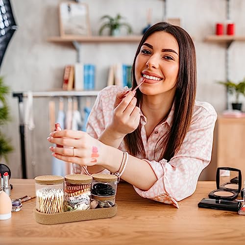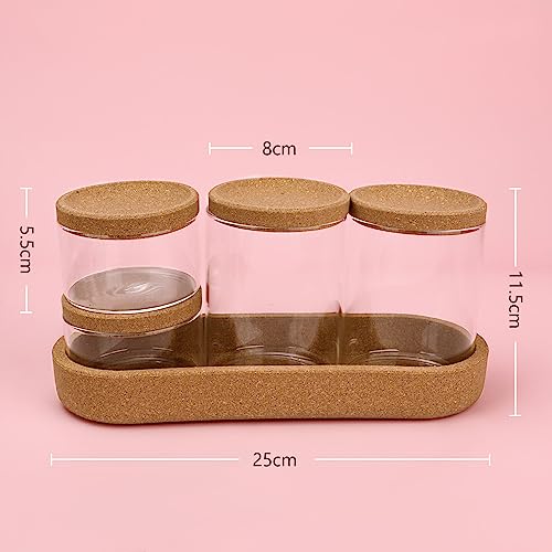 woyada - 4 Glass Cotton Buds Container with Tray and Cork Lid, Cotton Pad Dispenser, Travel Storage Box for Cotton Buds, Dental Floss Sticks, Hair Ties, Clips, Needles (4 Pack)