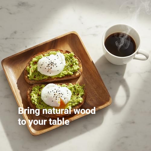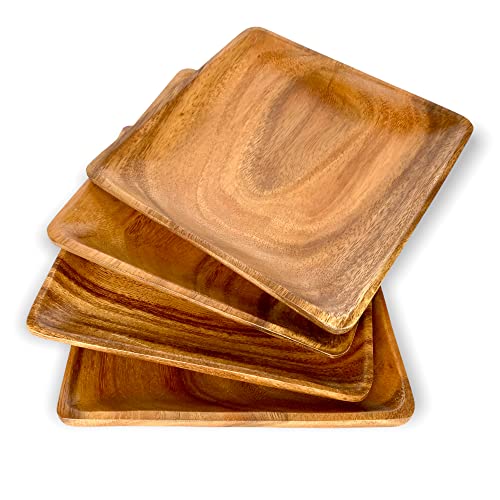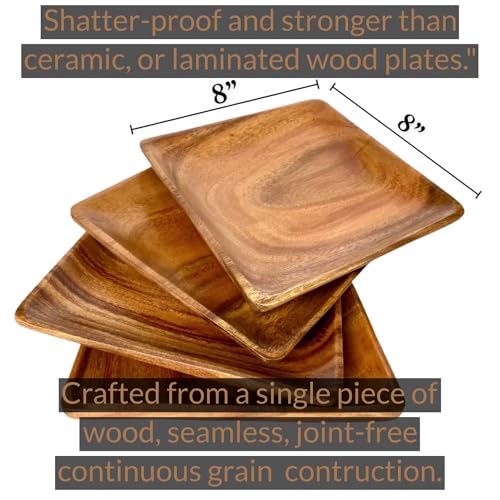 WRIGHTMART - مجموعة اطباق خشبية مصنوعة يدويا من 4 قطع ادوات مائدة متينة ومتعددة الاستخدامات للاطباق الجانبية والخبز والوجبات الخفيفة والحلويات خشب الاكاسيا تصميم ريفي طبيعي مربع 8 انش ×