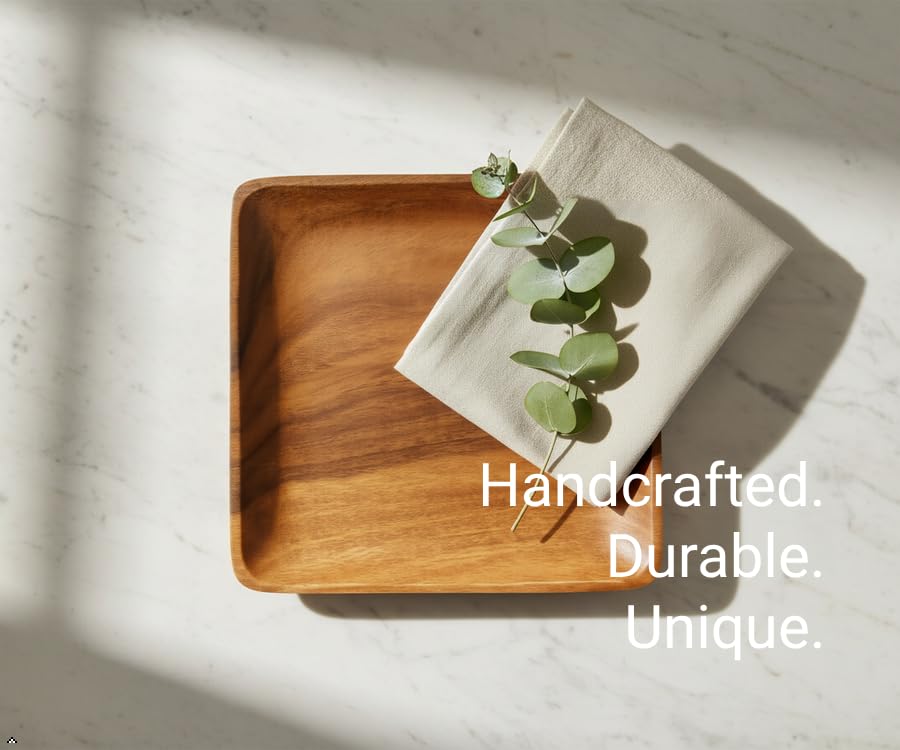 - متعدد الاستخدامات: الأبعاد: 8 انش × 8 انش × 1 انش حجم مثالي لطبق الخبز والزبدة أو طبق جانبي أو مدخل صغير. مصنوع يدويًا من خشب الأكاسيا الطبيعي، قد يكون هناك اختلافات طفيفة في اللون والحبيبات الخشبية والحجم والشكل.