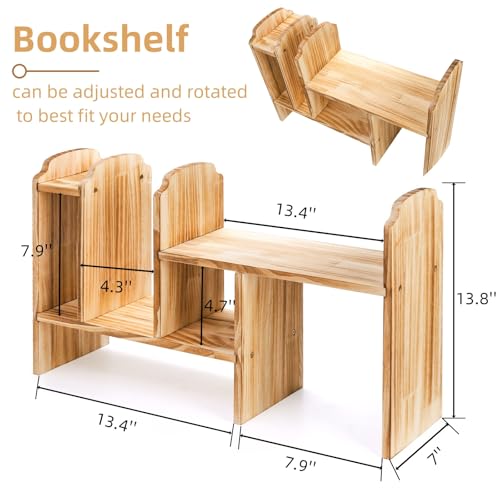 - Space-saving Helper: The compact and stackable design make this bookshelf a perfect choice for storing all books, magazines, and desktop clutter, keeping your desktop clean and tidy, and taking full advantage of your desktop space.