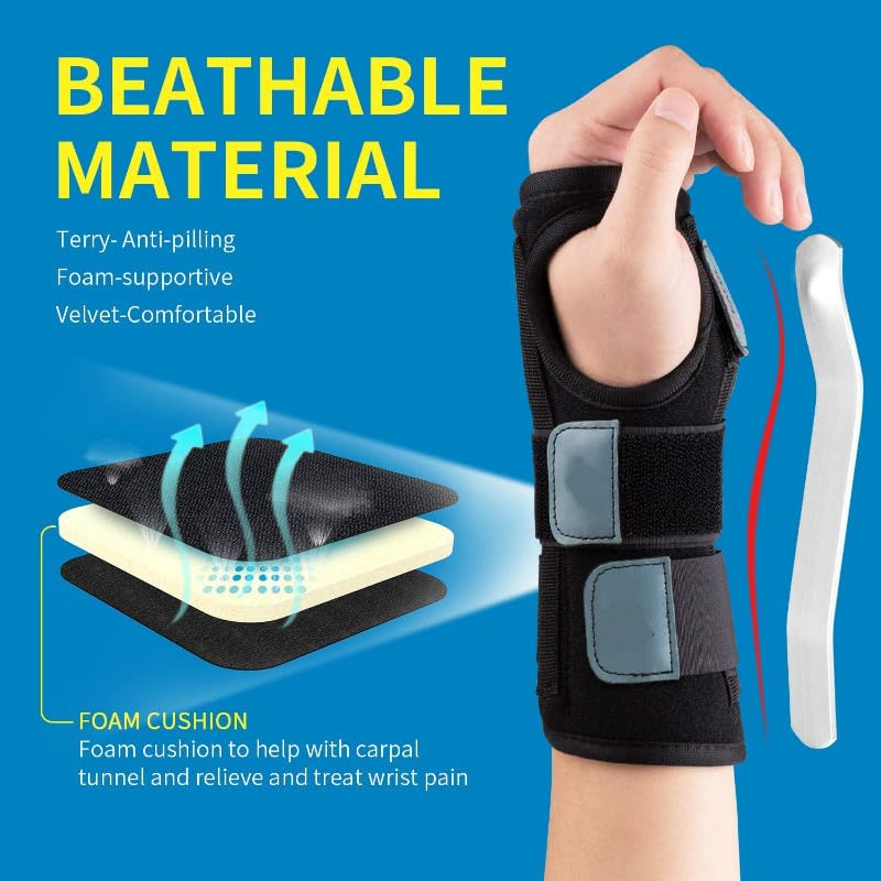 Generic - Wrist Brace with Splints, Black, Adjustable Support, Carpal Tunnel Relief, Breathable Foam Cushion, Removable Metal Splint