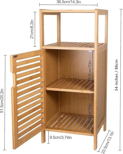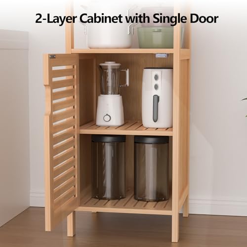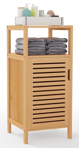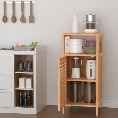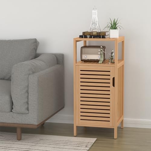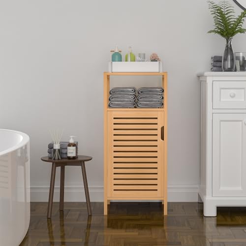 WRONWA - Bamboo Bathroom Storage Cabinet, Freestanding Floor Cabinet with Single Door for Living Room, Bedroom, Hallway, Kitchen