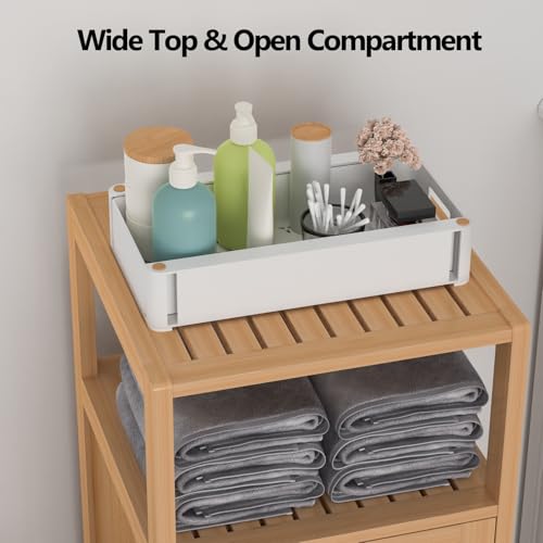 - With the freestanding design, WRONWA storage cabinet offers functionality and elegance for various spaces, such as bathroom, living room, bedroom. The warm tones and smooth finish of the bamboo create a visually appealing addition to any room.