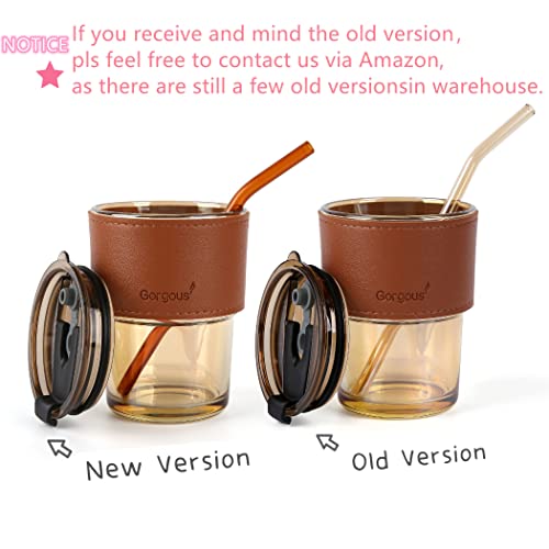 - DESIGNED FOR DRINKING: Glass coffee mug is made of high quality glass. Comes with a reusable glass straw 、a multi-used leak proof lid、a reusable heat resistant leather wrap, which make for easy drinking . Also can take off the lid and straw to drink directly. The lid is leak proof as there is a little stopper to stop up the hole. The mug with or without straw and lid is multipurpose ,as a coffee mug , milk cup, water mug ,tea cup , juice ,smoothies or any other beverages cup.