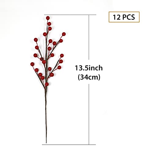 - Package: Set of 12, Each branch of red fruit is 13.5 inches long and has 5 branches. Each branch has 5 red berries of different sizes.The berry has a waterproof coating and is waterproof for 2-3 months.