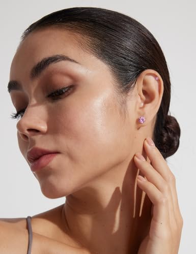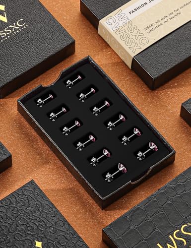 Wssxc - Wssxc 6 Pairs Stud Earrings Set Hypoallergenic Cubic Zirconia 316L Earrings Stainless Steel Earrings for Women (Pink)
