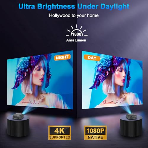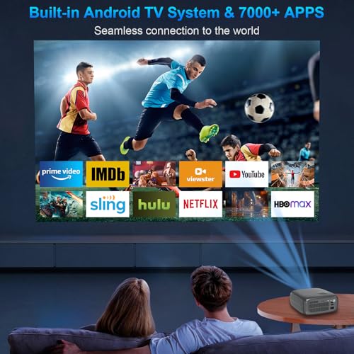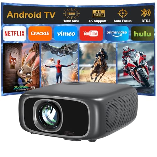 WTONISY - Projector[Android TV/Auto focus] 4K Support with WiFi 6 and BT 5.3,1800ANSI Movie Projector, Native 1080P Full HD,Auto Keystone Correction home theater S828