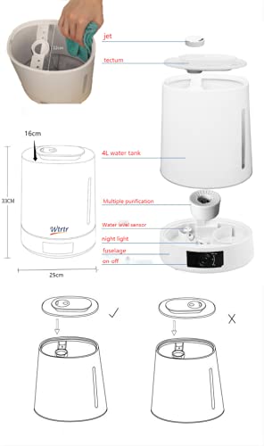 Wtrtr - Wtrtr Ultrasonic Cool Mist humidifier, 4L Top Filling Water,Air humidifier for Bedroom,Air Revitalizer Air Purifier (Black 4L)