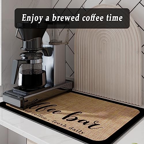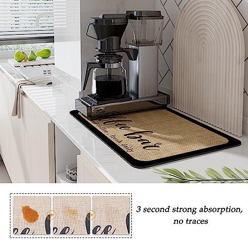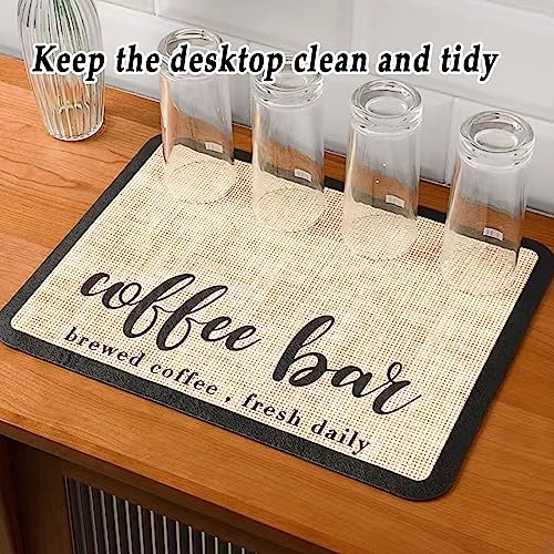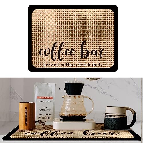 - 【Super Absorption】Coffee bar mat have super absorbent soft diatomite, strong water absorption, durable, light weight, which can up spilled coffee instantly without worrying about soiling your countertop while making coffee or stirring liquids on the coffee pot mat.