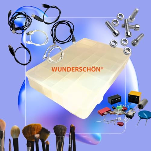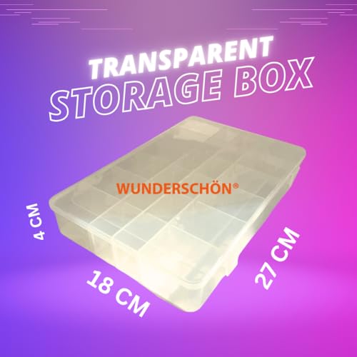 WUNEDRSCHÖN TOOLS & HOME IMPROVEMENTS - WUNEDRSCHÖN | Clear Plastic Box With Removable Compartments - Storage Cox Suitable For Jwerly - Tools - DIY - Delicate Components (Transparent, 27x18x4 CM)