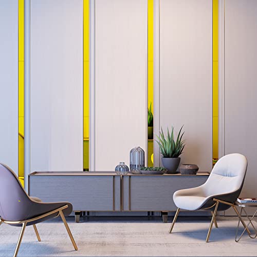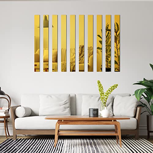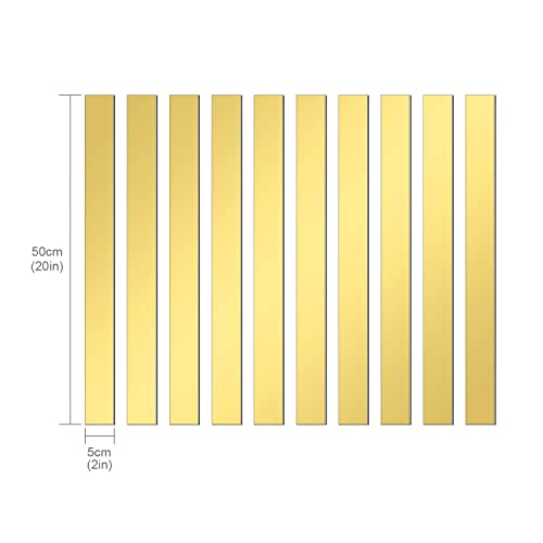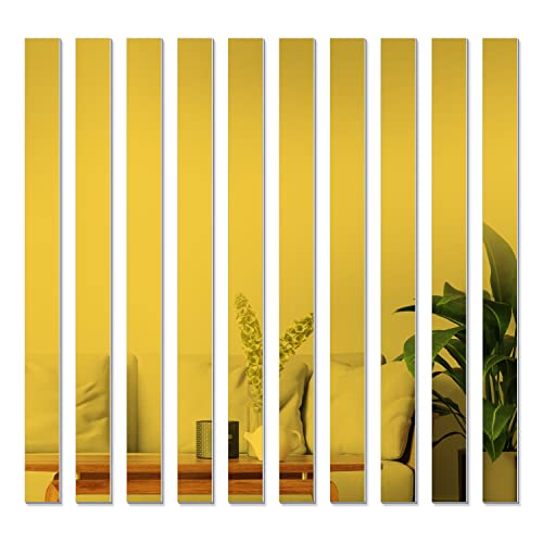 WUTAOBON - Mirror Tiles, 2''x20'' Mirror Tiles Self Adhesive Stripe Wall Mirror Stickers Removable Long Acrylic Frameless Mirror Sheets for Home Living Room Bedroom DIY Decor (10Pcs) (Gold)