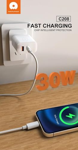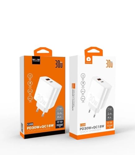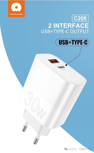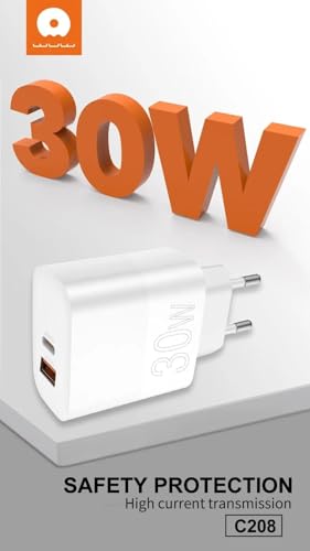 WUW - WUW Fast Charger Safe and Fast Charging with 2 Charging Ports Type C and Type A with AC Protection Chip
