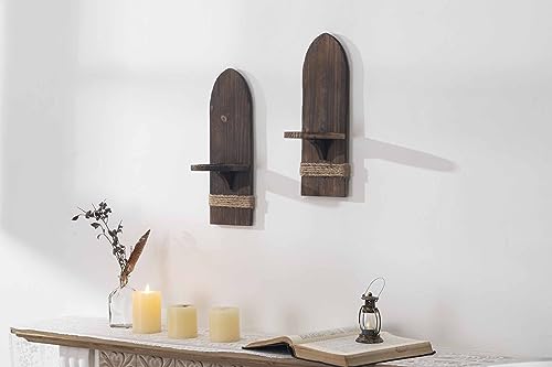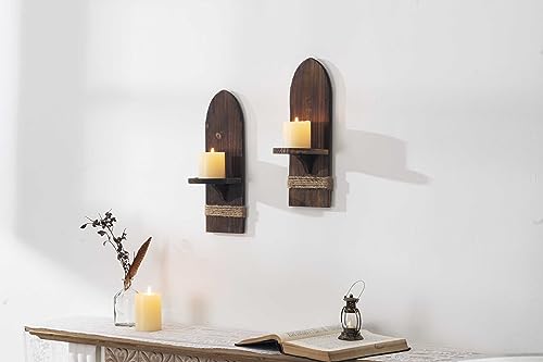 WVOPIAHY - شمعدان خشب بتصميم ريفي عتيق، حوامل شموع على الحائط بتصميم عمودي، ديكور حائط، حامل شموع يعلق على الحائط لغرفة المعيشة وحوائط الحمام من وفوبياهي - خشب، عبوة من 2 قطعة