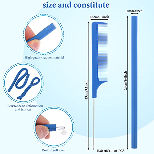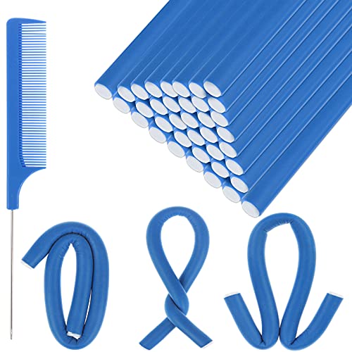 WWmily - 40 Pieces Foam Hair Curler Flexible Curling Rods No Heat Curls Sleeping Soft Hair Styling Sponge with 1 Pointed Tail Comb for Short and Medium Hair (7, BLUE)
