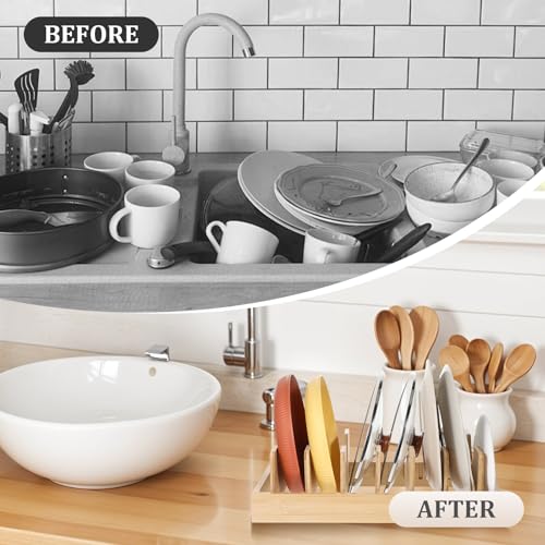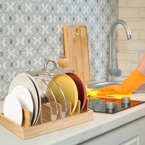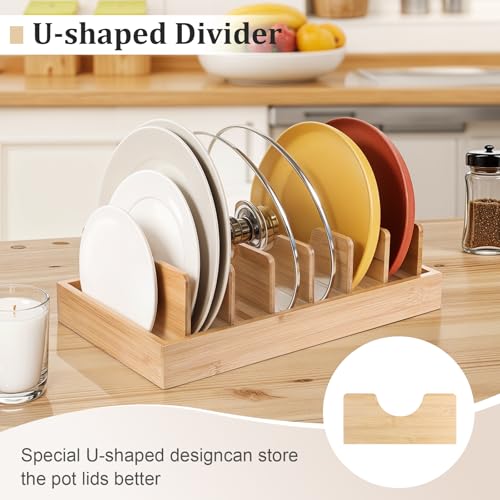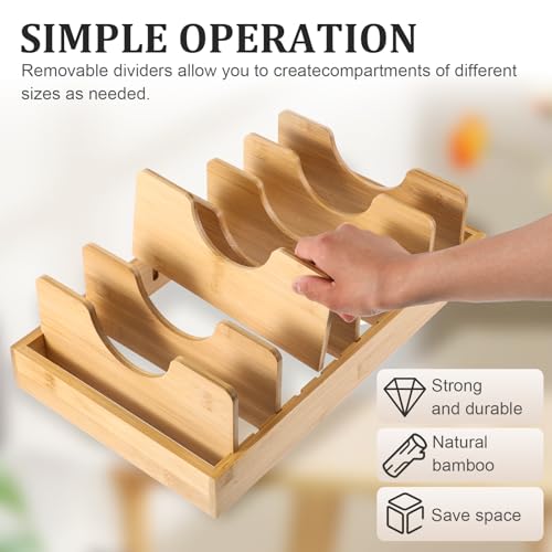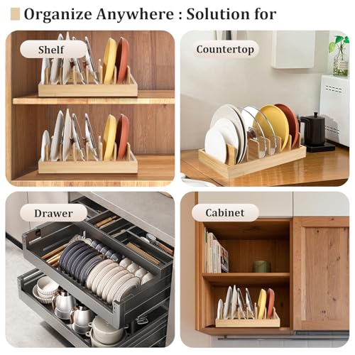WY LIGHTING LEVEL - منظم غطاء وعاء من الخيزران للخزانة وطاولة المطبخ، منظم خزانة المطبخ داخل الخزائن لاغطية الاواني والمقالي وألواح التقطيع واوراق الخبز واطباق العشاء