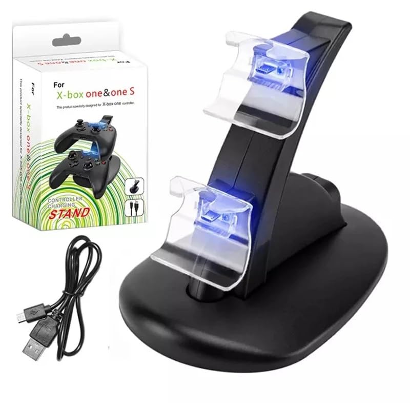- قاعدة تحكم اكس بوكس، شاحن يو اس بي مزدوج للشحن السريع مع مؤشر LED، متوافق مع شاحن وحدة التحكم اكس ون واكس ون اس (اسود)