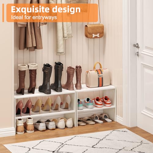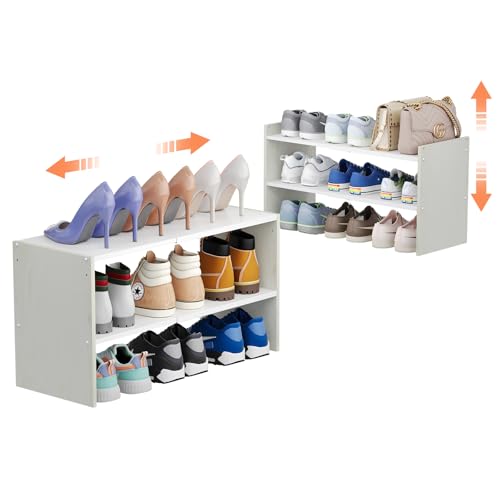 X-cosrack - منظم أحذية من طبقتين للخزانة، رف أحذية أبيض اللون قابل للتوسيع والتعديل، أرفف تخزين أحذية من الحديد والخشب قابلة للتكديس، للخزائن والمدخل والمساحات الصغيرة والجراج من اكس-كوسراك، عبوة من 2 قطعة