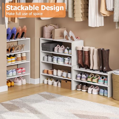 - 【تصميم قابل للتكديس】يمكن تكديس مجموعتين والمزيد من رفوف الأحذية لتشكيل رف أحذية مبتكر متعدد الوظائف من 4/6/8 طبقات لزيادة مساحة التخزين، وتخصيص طول وارتفاع رف الأحذية بسهولة ليناسب أبعاد المساحة المختلفة.