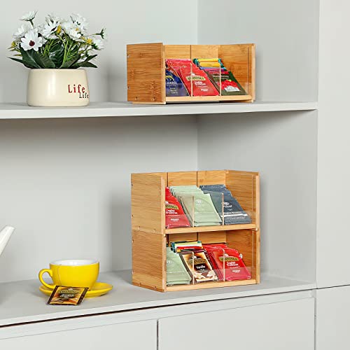 X-cosrack - X-cosrack Bamboo Tea Bag Organizer Storage Box 3 Tier Stackable Tea Bag Holder Tea Caddy Box Containers Tea Packet Rack Teabag Shelf for Office Kitchen Cabinet Pantry