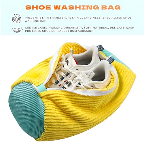- 👟【High-Permeability Fabric】Premium coral fleece laundry shoe bag for washer and dryer, allows soap and water to flow freely, enhances cleaning efficiency, prevents detergent residue, protects shoes from abrasion, perfect sneaker washing machine bag for everyday cleaning.