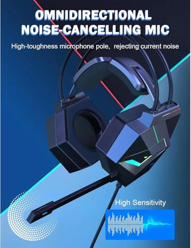Generic - X20 Wired Professional Gaming Headset, Noise-Cancelling Mic, 7.1 Surround Sound, RGB Lighting, 50mm Drivers, 3.5mm, Comfortable Over-Ear for PC & Laptop (Black) Oni-kuma X20