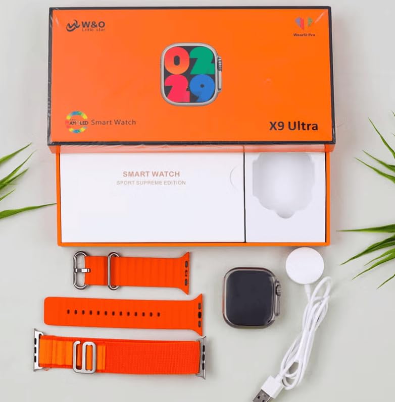 Generic - ساعة ذكية اكس 9 الترا( X9 Ultra )-مكالمات- NFC- بلوتوث -حزامين-إشعار معلومات التطبيق-مقاومة للماء- اللغة العربيه ولغات اخري -NFC-شحن لاسلكي(برتقالي )