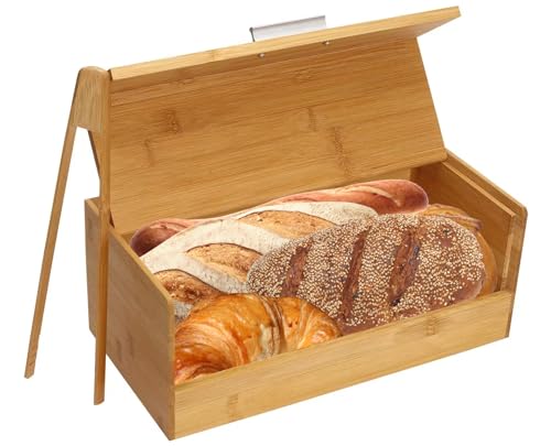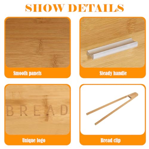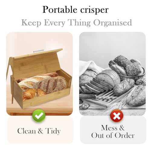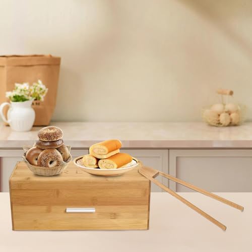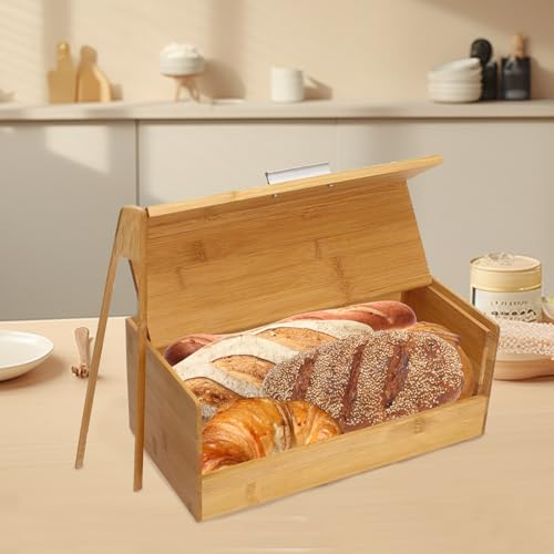 Xbopetda - Bamboo Bread Box, Breadbox for Kitchen Counter, Bread Storage Container with Bread Clip, Wooden Farmhouse Bread Holder, Keep Bread Freash, Bread Storage for Homemade Bread, Loaf & Croissant
