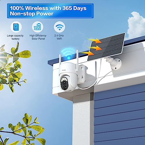 - 【100% Wireless & Solar Powered】The Xega Security Camera works on 2.4G WiFi, is equipped with Solar Panel and built-in high-capacity battery, which realize non-stop power and 100% wire-free security. Install the solar security camera outdoor anywhere like Apartment, Garden, Yard, Garage, keep an eye on your home security.