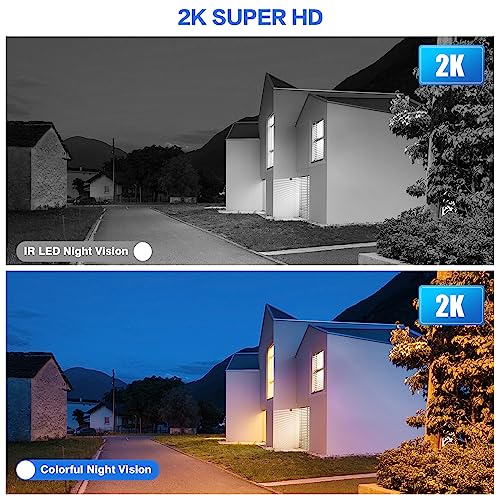 - 【2K Color Night Vision & Wild View】The outdoor security camera can easily control the camera 355° pan 100° tilt on the phone side, providing a wide field of vision and eliminating blind spots. The PTZ camera shows you everything in 2K FullHD, you can see clearer color night vision up to 50ft even in low light.