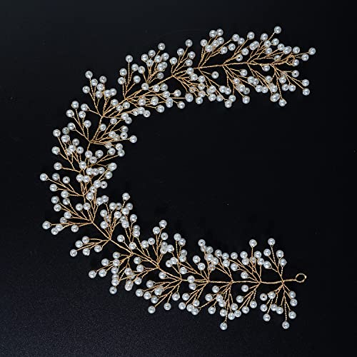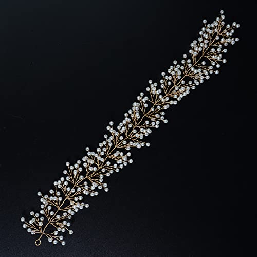 Xerling - طوق رأس بلون ذهبي مزين باللؤلؤ للعروس للبنات، طوق رأس من الكريستال، اكسسوارات شعر لحفلات الزفاف، طوق رأس للنساء من زيرلينج (لون ذهبي)