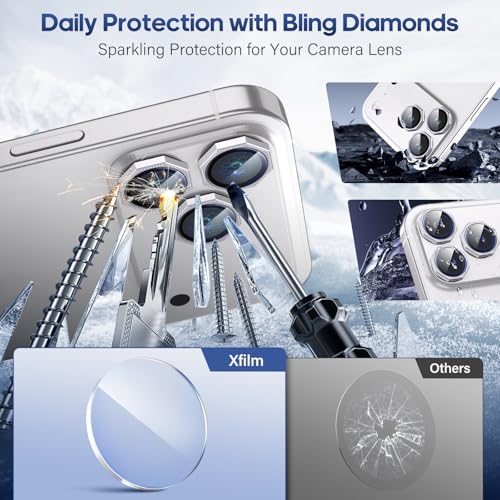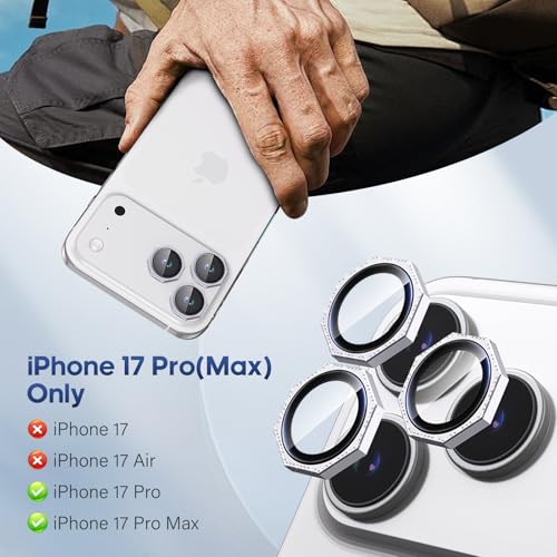 Xfilm - Xfilm for iPhone 17 Pro / 17 Pro Max Camera Lens Protector Nut Bling Diamond, Individual Metal with 9H Hardness, Scratch-Proof Camera Screen Protector, Stylish Accessories, Case Friendly (Silver)